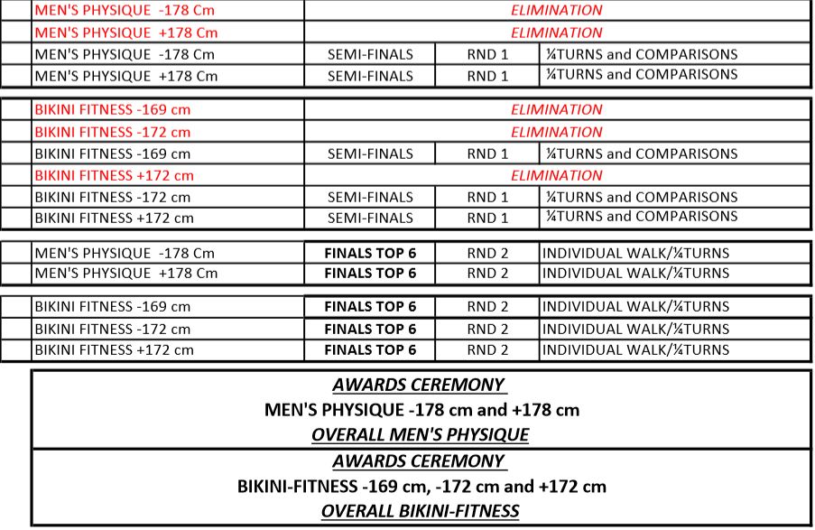 * – IFBB Head Offce is currently working on introducing of a new category to the IFBB Calendar of Events: Women’s Fitness Model. Rules governing this new clas have been under construction and will be published later. This category will be run as a test class, with no medal presentation. Other awards will be offered to the winners.