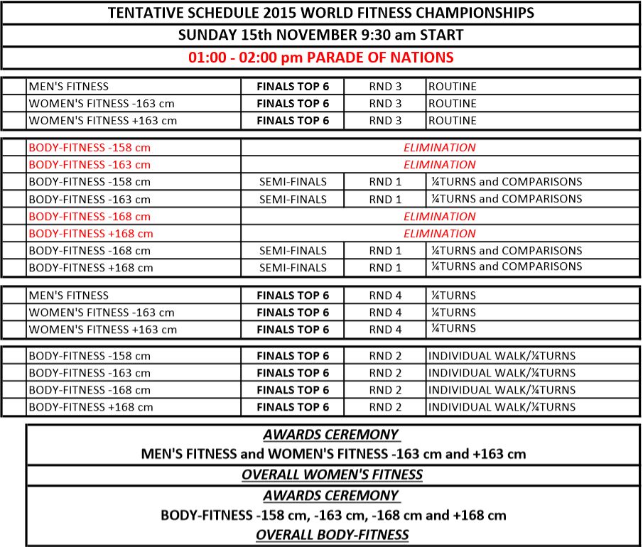 ” srcset=”/uploads/emoticons/smile@2x.png 2x” width=”20″ height=”20″>The tentative schedule is now online at http://www.ifbb.com/wp-content/uploads/2015/11/2015-TENTATIVE-SCHEDULE-WORLD-FITNESS_v2.pdf