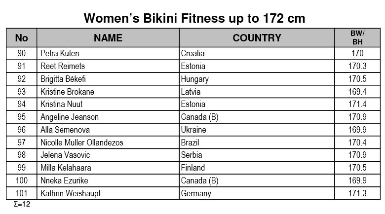 IFBB WORLD FITNESS CHAMPIONSHIPS 2014 – WHO WILL BE THERE Pt. 2Bodyfitness and Bikini Fitnessby Andrew MichalakVery strong teams from Ukraine, Slovakia, Estonia and three Scandinavian countries: Norway, Sweden and Finland. Beside the host country, Canada, the biggest team from Brazil. Also many competitors from Australia and South Africa. Most of them are new names, successful at the national level till now. Canadian competitors had their IFBB International Events Qualifier. Some of them participated also in the 2014 North American Championships in Pittsburgh, USA.