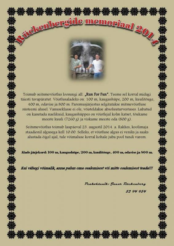 „Rückenbergide memoriaal 2014“. See mitmevõistlus on igal suvel reeglina tõsisem sõprade/tuttavate/spordihuviliste kooskäimine. Sel korral oli tegemist juba kümnenda võistlusega (2007-2014). Miks ma ühele igasuvisele sõprade kooskäimisele olen paljude jaoks võib-olla arusaamatult andnud sellise nimetuse, „Rückenbergide memoriaal“, seda räägin kunagi oma tulevastes postituses. Ütlen vaid ehk egoistlikult ja edevalt kõlavalt, kui siiski veendunult, et usun, et olen selle välja teeninud…