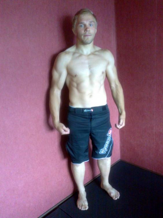 LÕpetuseks paar pilti sellest, milline olin reede hommikul. Kaal pildil siis 76.2 kg ning septembri lÕpuks ja edukaks vÕistlemiseks peaks see olema kuskilt 74 kg enne igasuguseid trikke, mida vedeliku piiramisega teha saab. VÕistluskaal 73.5 kg, kaalutakse koos riietega vahetult enne esimest matši.