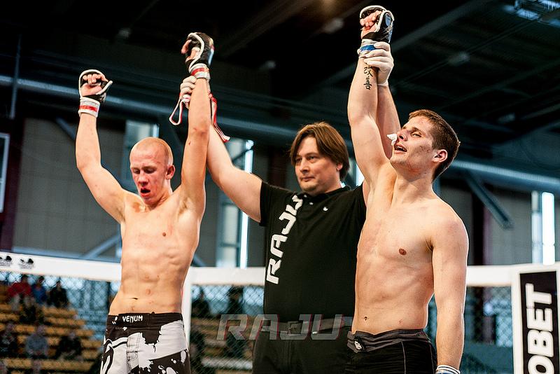 Üritus ise oli absoluutselt super. Matšide mõttes oli kindlasti seni parim Raju ja ma loodan, et ehk saab seda ühel hetkel ka kuskil järelvaadata koos minu kommentaaridega. Kahjuks õhtusel profiüritusel pidi minu klubikaaslane, kelle ettevalmistuses ka osaline olin Lauri alla vanduma Poola võitlejale. Lauri domineeris esimeses raundis väga kenasti aga vastane oli väga ohtlik maasvõitleja ja teises raundis sundis salakavala valuvõttega Lauri lõpuks alistuma. Päevasel üritusel võistles aga otse minu käe alt seitse vaprat amatööri, kellest koguni viis olid debütandid. Kahjuks kõikidel debüüdi tegijatel tuli vastu võtta kaotus, aga need tulid kogenenumate vastaste vastu ja just niimoodi kogemust saadaksegi. Sain iga mehe kohta olulise tagasiside, et mida edaspidi parandada ja see järelkasv klubis kannab veel ühel päeval hästi vilja. Juba mitme matši kogemusega Sten Anslan võttis taas kiire võidu ning klubi psütivõitlustreener Kaspar Kraav pidas ülitehnilise ja meelelahutusliku matši Tallinna võitleja Martin Saarega, mis tunnistati viiki. Tõesti – see matš oli minu meelest tervikuna terve päeva parim ning siin võib küll öelda, et mõlemad mehed võitsid.