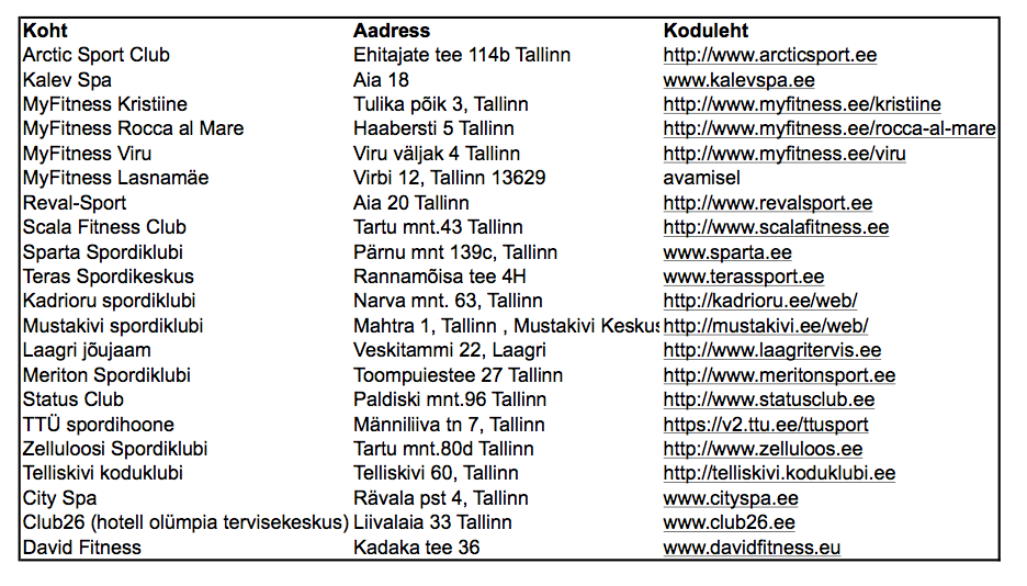 Lisaksin siia omalt poolt veel Audentese jõusaali.