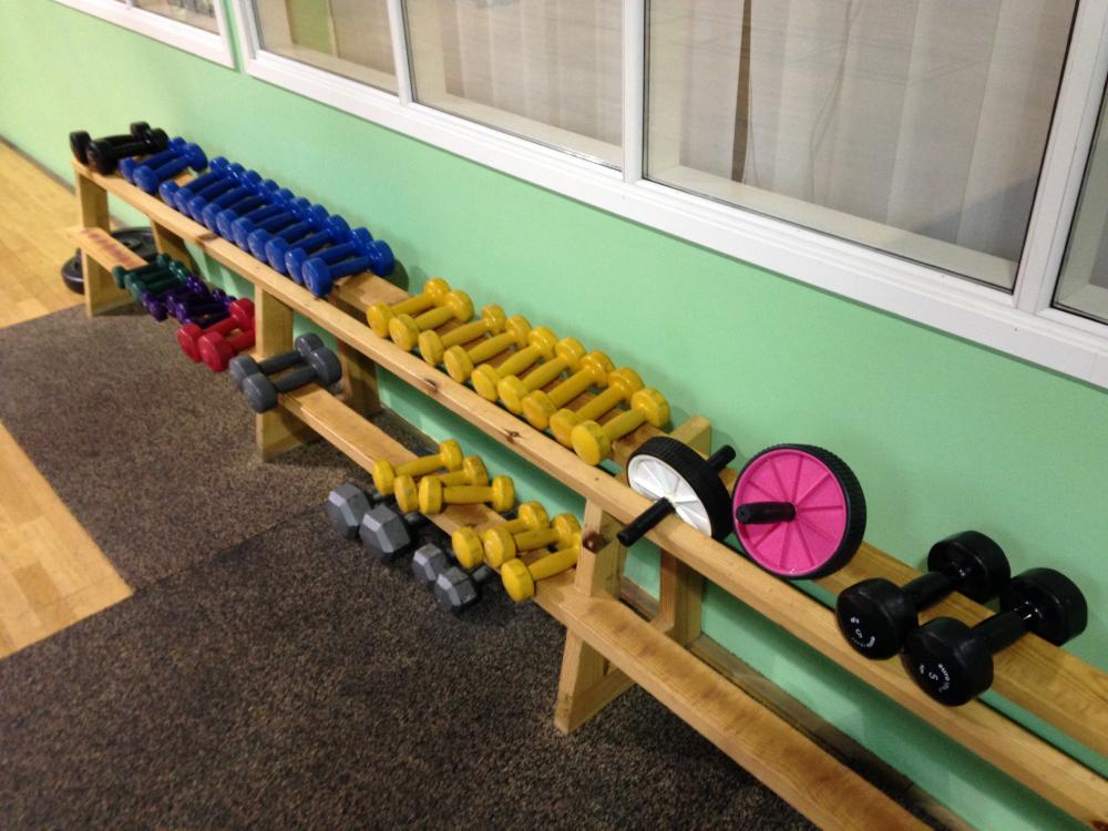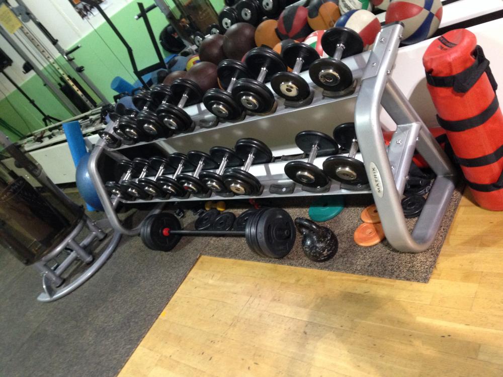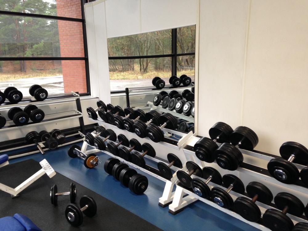 12,5 kiloseid hantleid on 8 tükki, et kõik neli keskmisest tugevamat naist korraga suruda saaksid. Saali keskel asub sujuv plokksüsteem, olemas ka smithi kang ja tõstekangid.