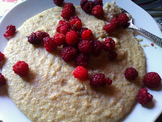 Süsivesikuallikaks oli kaerakliipuder, mille 150 ml(ca 70g, ~30g süskareid) täitsid taldriku üllatavalt hästi! Üks mure mul tegelt kogustega on: kuna köögikaal on kadunud, hindan putrude/riisi jms koguseid silmaga ja sealt võib tulla kas vahe tegeliku kalorivajadusega.