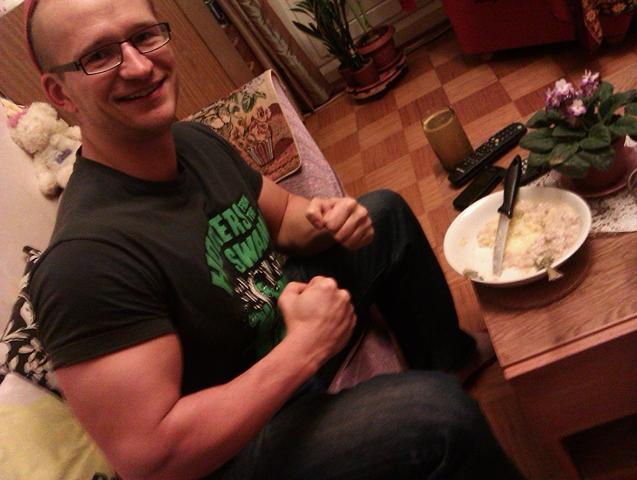 ” srcset=”/uploads/emoticons/biggrin@2x.png 2x” width=”20″ height=”20″> Praegu üritame toitumist tema kui muusiku kaootilise päevakavaga sobitada nii, et ka viimased kiuslikud kilod maha saaks ja keha koostis muutuks.Enne trenni jootsin talle sisse edukaks trenniks vajaliku Workout Shocki laksu+Kirbu erisegu.