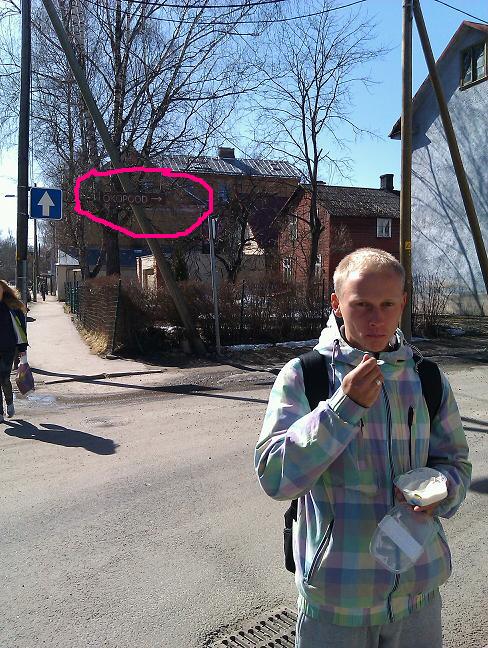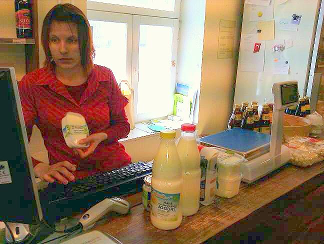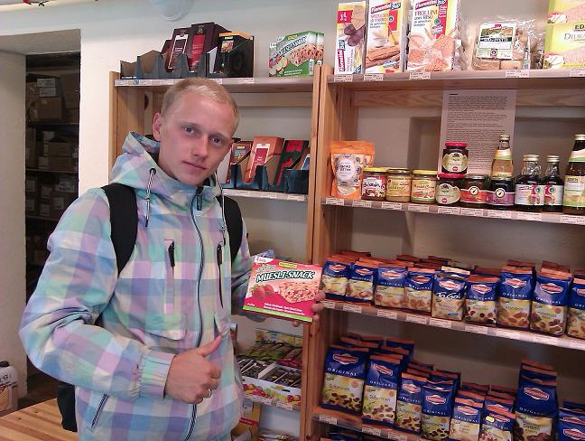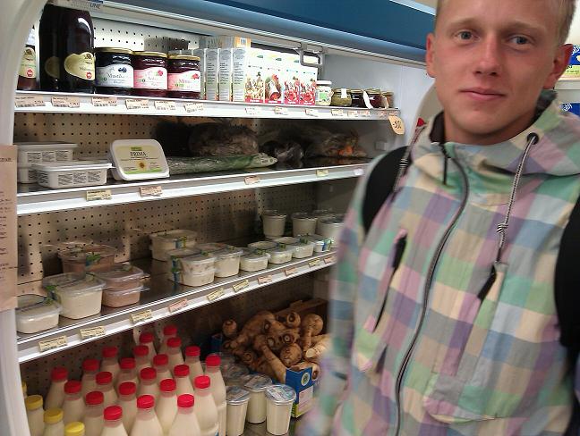 Allar Lamp sööb kohupiima(ma ei teagi, kas võttis siis kakao, vanilje või rosina oma), aga igatahes kiitis. Poe juurde suunab ka vastav silt postil.