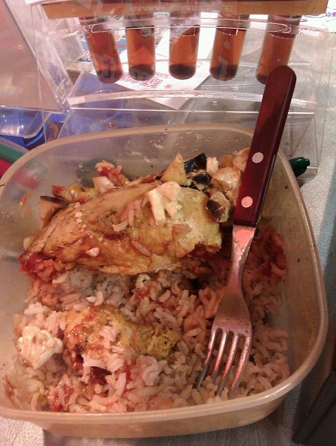 Lõpetuseks: minu tänane 4. toidukord: pruun riis, 200g kookosrasvaga praetud kanafileed, lillkapsas ja baklažaan.