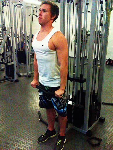 Seejärel õla esiosale isoleeriat harjutust: ploki ette tõsted 4 seeriat.