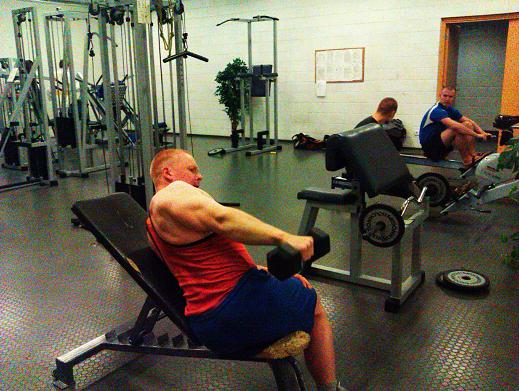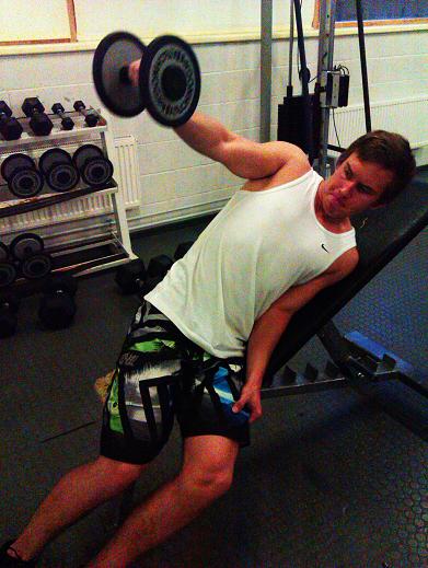 Õla haamerdamist jätkasime keskosaga. Kuna plokil kõrvale tõsted käisid noorele üle jõu, tegime kaldpinnal hantliga.