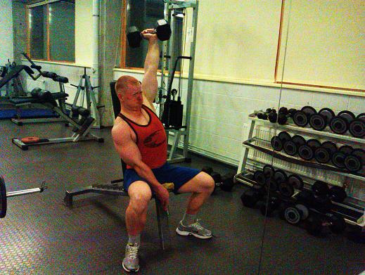 Seda harjutust tegin puhtuse peale taaskord, 8 kgse hantliga 3 seeriat, 12-15 kordust, ühtlase pingega, so liigutuse alguses ja lõpus ei puhka.