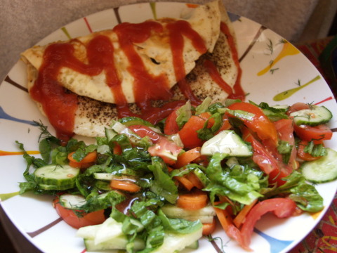 100-150g enda tehtud toorsalatit (viimasel ajal valikus näiteks porgand, kapsas, lehtsalat, kõrvits, paprika…)