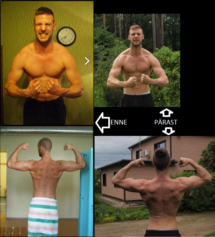 Kava on hea. E,T ja N,R – kolm nädalat raskelt ja nädal 50%. Korralikud baasharjutused. Ei istu mulle kuidagi need masinad ja mulle nagu sobivad ka rohkem vabad raskused. Kindlasti on mul ka masinaid sees, aga vähe ütleks alla 30% kindlasti. Kaloreid jälgin niipalju, et loomsed valgud tuleks min 150g täis ja kaalu jälgin. Põrssaks ei tahaks süüa. Kreatiini võtan mängu sisse ja teen sellise suvetuuri. Loodame jõunäitajate tohutut kasvu ikka