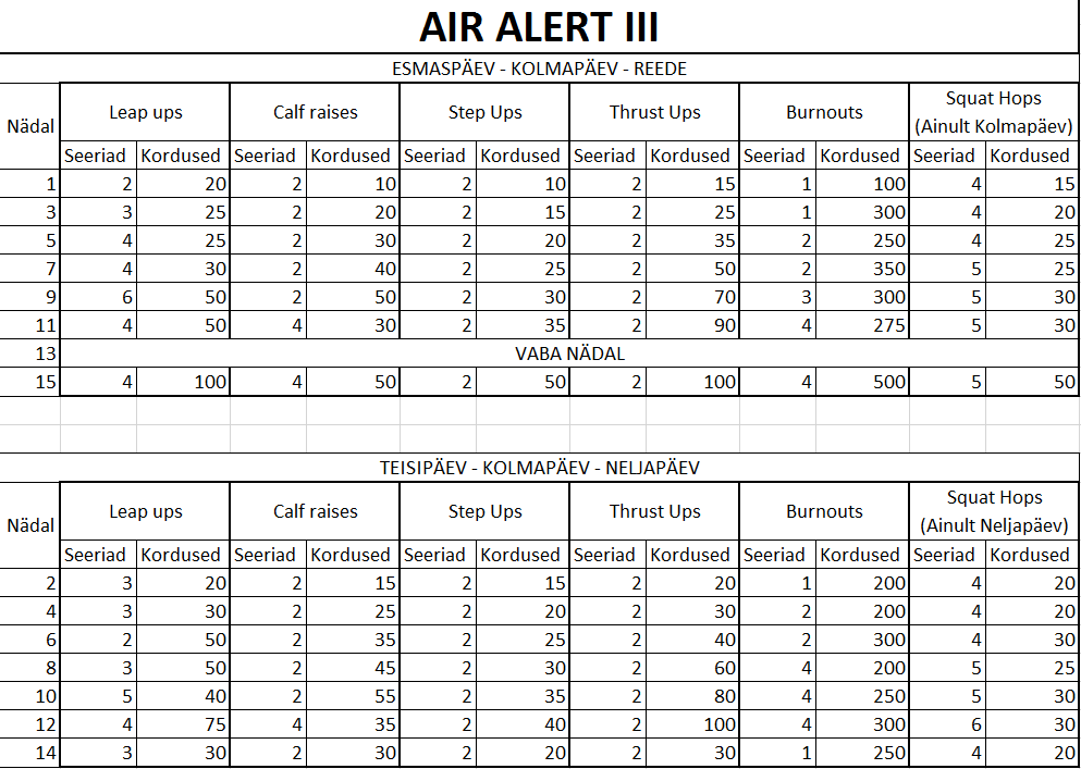 Homme siis ülakeha. Juba korralik raske trenn. Täna õhtul ka hüppeprogrammi teise nädala esimene trenn. Süda vaja ka töökorras hoida