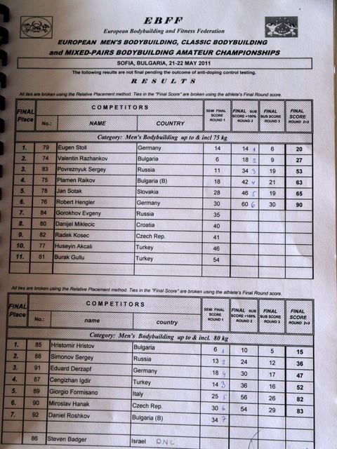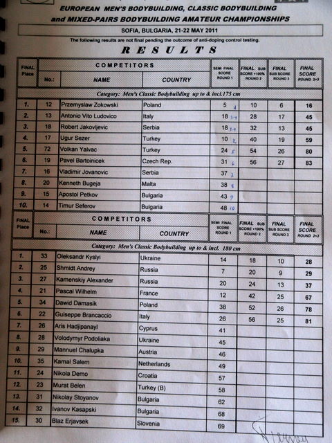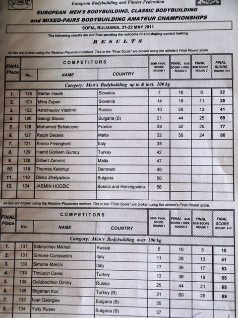 Men’s BB & CBB European Championships 2011 – tulemused peale dopingukontrolle!