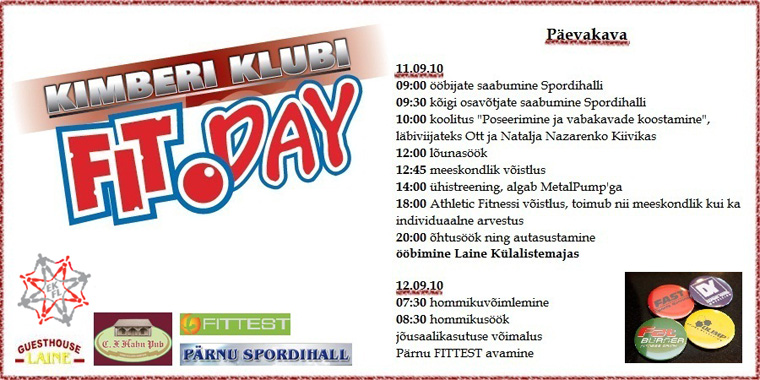 MemberSeptembri teisel laupäeval, 11.09.2010 toimub Pärnus sportlaste ühisüritus Fit.Day Kimberi Klubi.