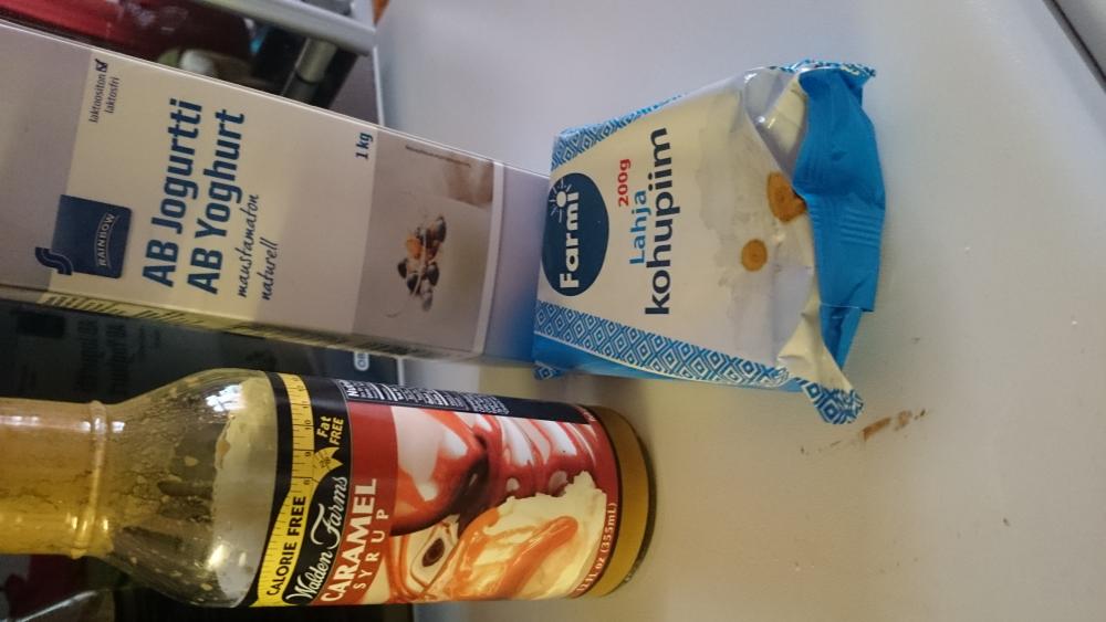 MemberMul on karamelli dipikaste (maitse siirupiga vist pm sama, dipikas aga oluliselt paksem) juba peaaegu otsas, mustikat pole kätte saanud, pannkoogi siirup on ka ikka ülihea. Ja just kohupiimal, õhtul veel nõks pähkleid ka peale ja nämm