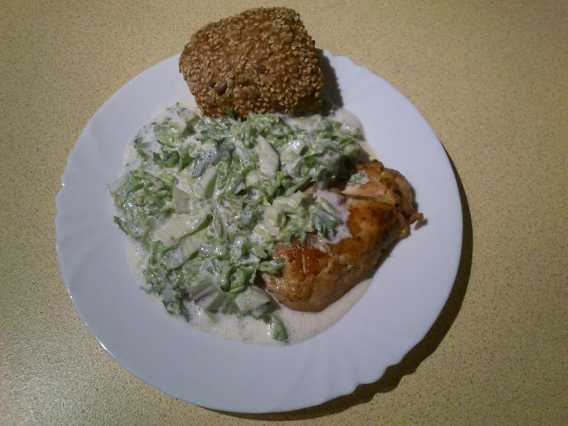 Õhtuks midagi kerget. Kukkel, kana ja lehtsalati salat (suhkur, äädikas, hapukoor, jube hea