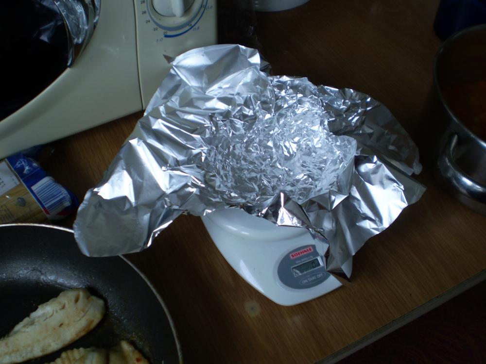 Võtsin jupi fooliumit ja vajutasin käe abil kausiks.