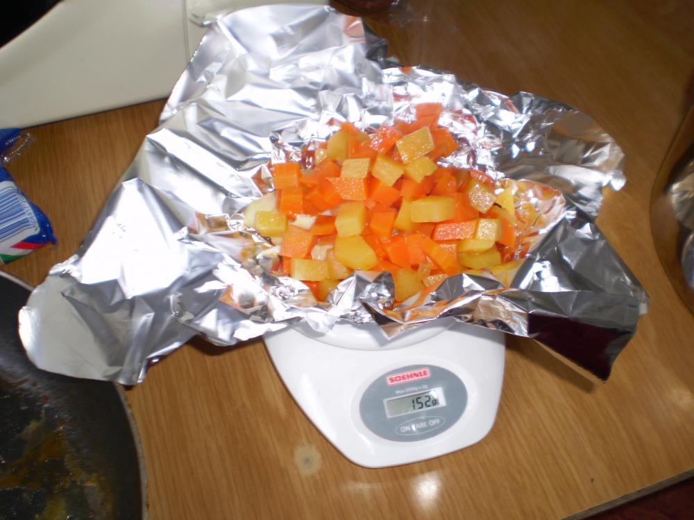 Juurde lisasin 150g keedetud porgandeid ja kaalikat.