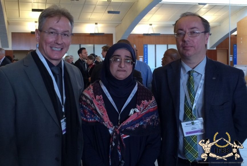 Following the fluent relationship with WADA, IFBB attended the Annual WADA Symposium in Lausanne, represented by the Chairman of the IFBB Anti-Doping Commission, Prof. Mauricio de Arruda, and the IFBB Executive Member, Marco Bosco.In the picture we can see Ms. Nadiah Al Shamali, from the OCA Anti-Doping Commission, with both IFBB Officials IFBB is recognized by the Olympic Council of Asia (OCA), and will participate at the next coming Asian Beach Games in Phuket, Thailand.