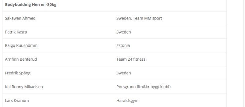 MemberCompetitor lists are now online, not complete though, see them at http://norwayopen.no/fitnesskonk/deltagere/