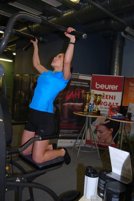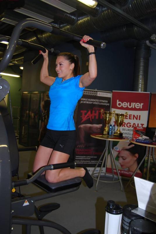 kuna eelmine kord komenteeris Ott minu 3nda koha Audentese jõusaali võistlusel nii : “järgmine samm on pjedestaali kõrval, auhinnaks soe käepigistus”, siis mõtlesin, et nii madalale ma nüüd küll langeda ei saa. Järgmine etapp olid kükkid poole keha raskusega, ja kui ma saali astusin, siis naiste tulemus, mis mulle vastu vaatas oli 230 kükki!!! Ausalt, ma ei uskunud, et ära teen ja seda numbrit vaadates, ei tahtnud isegi alustada, sest teadsin hästi kui raske see on ja olin kindel, et ei jõua kahesajagi. Kui mul oli 225 ees, siis karjusin nagu pöörane “Ma teen ära!”, hullult rasked olid need viimased kükkid ja lõpuks ergutasin ise ennast terve saali peale ja see aitas- tulemuseks 245 kükki ja I koht! Nädalad mööduvad ülikiiresti, kõik nädalavahetused on tegevusi täis, poseerimised, fotosessioonid, seminarid, koolitused ja loomulikult ka trennid.. 2 tunnised