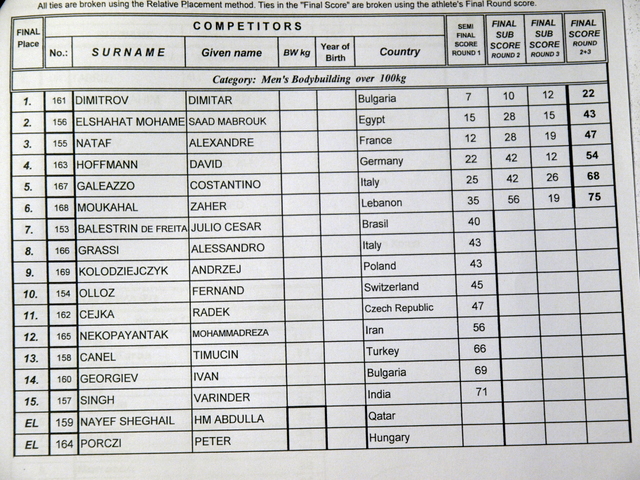 Meie jaoks lõppesid need maailmameistrivõistlused positiivselt lõpp -protkolli märgiti mulle 10.koht (24 võistleja seas), seega selle koha peale ei pea küll silmi maha lööma. Eurooplastest olin 5. Parim eurooplane seejuures 3 (Azerbaidzaan – kui seda üldse euroopaks nimetada saab, EM nad küll võistlevad).