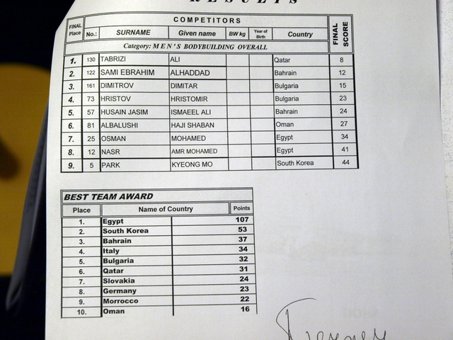 Absoluutseks tuli Ali Tabrizi (Katar), meeskondlikult võitis Egiptus.