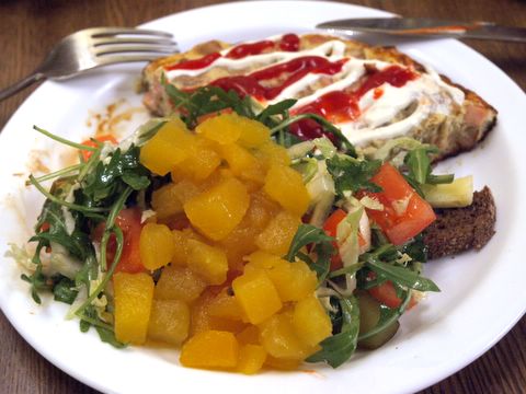 Juurde sobib garneeringuks omatehtud toorsalat ja omatehtud kõrvitsasalat – head isu!