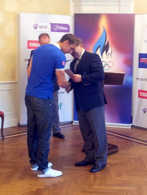 Esmalt sai ametliku akrediteeringu kätte oma 5. datele OM sõitev Aleksander Tammert, kes on ühtlasi ka Eesti lipu kandja avatseremoonial. Sassiga ajasin ka pikemalt juttu ja juba homme lubas Fitshopist läbi tulla, et veel viimaseks OM ni jäänud kuuks paneksin talle kokku sobiva toidulisandite kompoti, et vanameister õigel ajal tippvormis oleks.