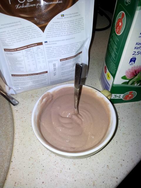 MemberPks huvitav tähelepanek veel. Kui tavaliselt valgupulbrit proovida segada lusikaga tassi koos piima või keefiriga, siis kipub see jääma tükki. Puding segunes aga lusikaga segades täielikult ja mitte ühtegi kõva tükki sisse ei jäänud. See on hea, sest shakerisse segamiseks jääks ta liiga paksuks ja kogu aeg blendrit ei viitsiks ka määrida. Õige pea alustame pudingu degustatsioone ka poodides ja spordiklubides.