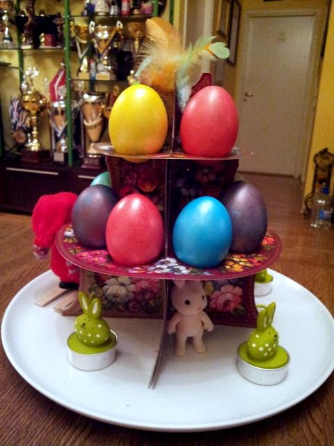 Koju tulles ootas mind ees juba munadepühale kohane üllatus. Perenaiste tehtud munapüramiid…