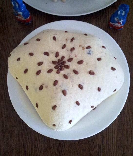 Kõigepealt Natalia tehtud pasha (rammus kohupiim, koor, rosinad jne.), supermaitsev oli, sõin väikse tüki….