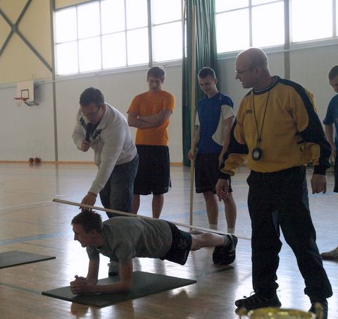 kolmas ala tonegus keha fikseeritud asendis hoidmine, et võrdne oleks keha asend pandi igale võistlejale selline liist seljapeale, kus oli näha, et kui väsima hakkad ja ennast lõdvaks lased, siis pandi kell kinni