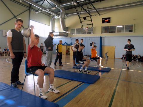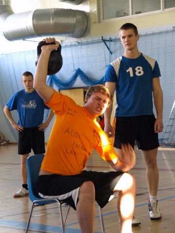 Järgmine ala oli istudes sangpommi surumine 16 kg korduste peale