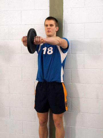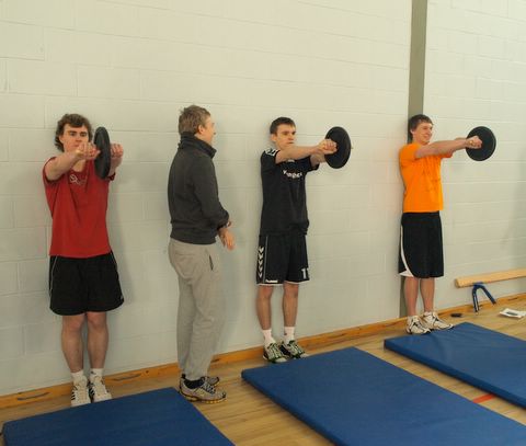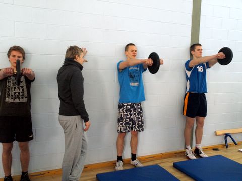 Järgmine ala raskuse hoidmine 10 kg ees sirgetel kätel