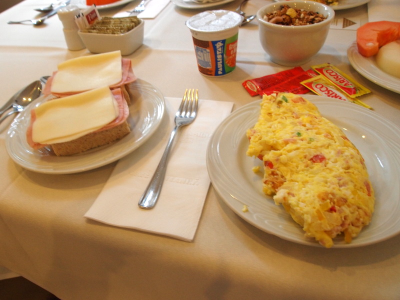 Hommikusöök oli hea, puuviljade valik muidugi meeletu ja maitse hoopis teine kui meil pakutavad. Eriti hea oli papaia, lisaks kõikvõimalike muid puuvilju, mille nime ka ei tea. Brasiillastele omaselt kange hea kohv ja omlett. Toidupoe leidmiseks pidime väga pika tiiru käima (kuid ka viimane tegevus on igati omal kohal, sest lamamisega vormi ei hoia, seega trenni asemel 2 tundi juba hommikul kõndida on igati ok.). Toidupoes domineeris muidugi ka puu ja juurviljalett – see võttis ikka silma kirjuks ja kõik on valmis puuviljad, mitte pooltoored nagu meil pakutakse. Tegin palju ka pildimateriali, proovin jõudumööda üles panna (loodetavasti on teises hotellis kiirem internet, siin 2 MB/SEK üleslaadimine, seega pilte panna on sellega keeruline).