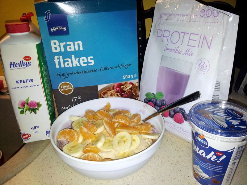 MemberNatuke jälle tooiduteemadel ka. Nädalavahetusel on mul kombeks süüa natuke teistmoodi kui nädala sees. Nii proovisin täna hommikul kuidas uus Smoothie mix sobib segada keefiriga ja kuidas see maitseb täistera nisuhelvestega. Peab tunnistama, et tulemus oli väga maitsev! Smuuthie mix on oma koostiselt natuke paksem kui tavaline valk ja seeläbi jääb ta ka lõpptulemusena mitte nii vedel kui tavaline valgukonsentraat. Tuleb selline kreemjas mass.