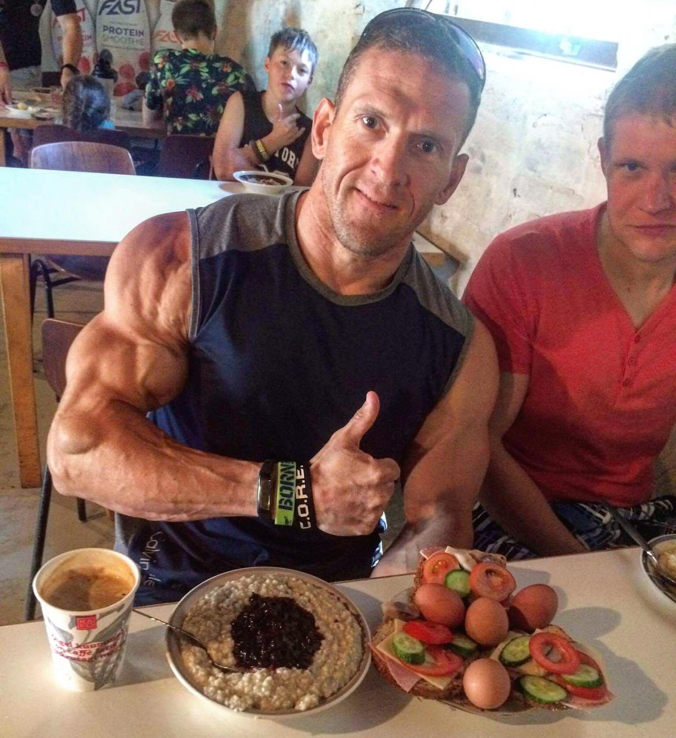 Trennikoormuste osas olen võtnud natuke tagasi ja suuri raskuseid kahe võistluse vahepeal kasutanud ei ole – dieet ise on laastav tegevus ja liiga intensiivne või ka lõhkuv trenn teeb seda omamoodi. Pigem tunnetuslik ja varuga tegemine ja samas maht on suht suur lihasrühma kohta. Aeroobset ka iga päev ca tund – so nädalas 6-7 tundi tuleb ikka kokku. Mul istuv eluviis ka kui seda ei viitsiks teha, siis ei tuleks üldse kulutust. Toidu osas saan ikka suht vabalt süüa ja ka koguseid ei ole pidanud küll offseasonig võrreldes põhimõtteliselt isegi vähendama, lihtsalt tund kulutust päevas rohkem teeb juba oma töö. Nii riisi, pasta, pudru ,kui leivakogused samad ei ole pidanud sv. kusagilt kärpima kui siis õige pisut üksikutel päevadel. Päevane kaal on seal 88 – 88,5 kilo vahel ja tempos 300gr. nädalas liigun alla.