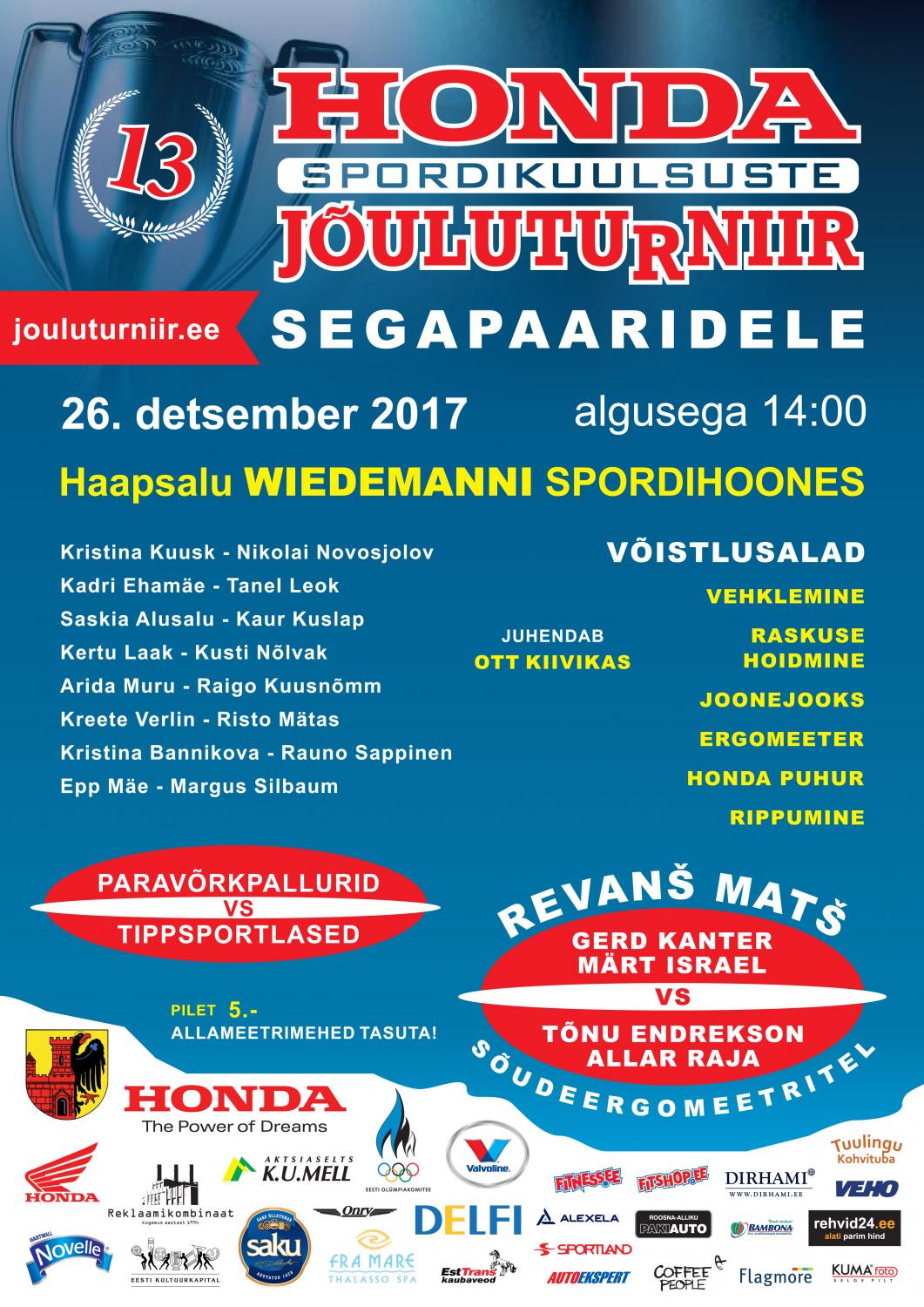 Muudest tegemistest on fookuses Honda Spordikuulsuste jõuluturniir, seal esindavad fitnessi ja kulturismi Arida Muru ja Raigo Kuusnõmm. Muudest tegijatest kohal Novosjolov, Leok, Raja, Kanter, Endrekson jne. Esmakordselt ka vehklemine kavas, mis on väga huvitav. Üritus toimub 26.12 kell 14.00 Haapsalu Wiedemanni spordihoones ja ajaliselt umbes 16.30 ni. Vaatamata sellele, et DELFI teeb ka otseülekande soovitan kohapeale tulla ja Raigole ja Aridale kaasaelama!