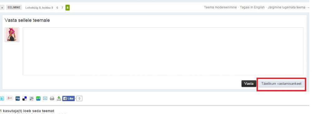 Esiteks on vajalik kasutaja, millega mingit teemat alustada või kommenteerida, et kirjutada kastikesse tekst või lisada pilt. Esialgne kastike ei võimalda lisavõimalusi, seega klikka alt paremalt nuppu- Täielikum vastamisankeet.