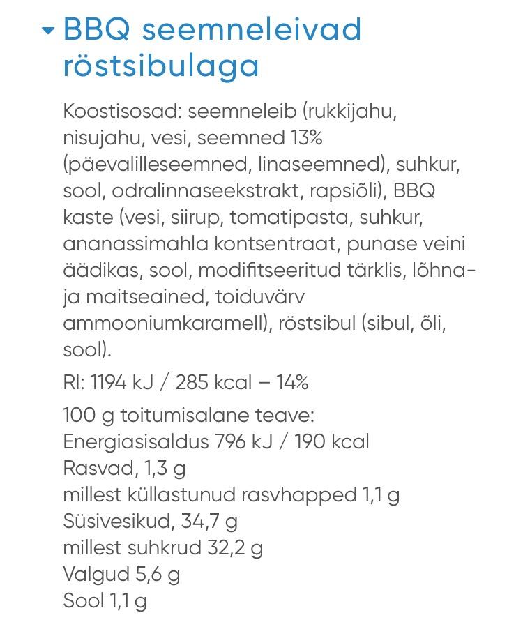 R-kioski nö tervisemenüüs mitmeid huvitavaid snäkke. Endale hakkasid silma need BBQ snäkileivad, mis pealtnäha tundusid rasvased aga tegelt ainult 100g kohta 1,3g rasva.