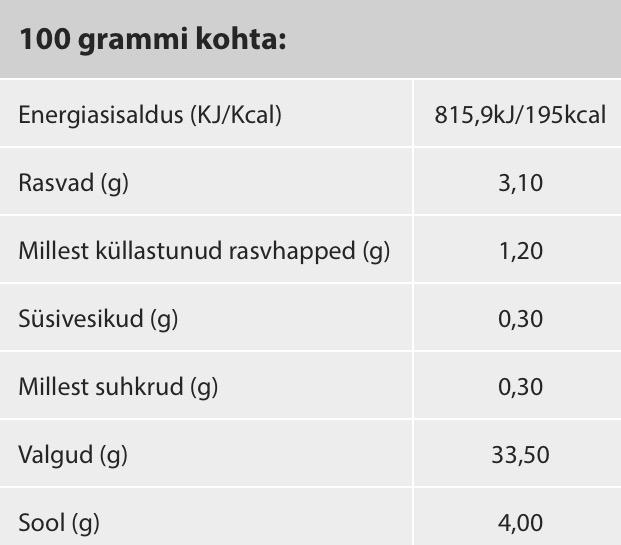 MemberOn 25.9.2017 at 11:33, Reinart ütles:100 g toodet sisaldab: