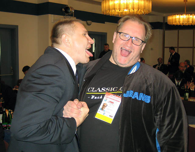 Rahvusvaheline Loby ! Avaleht » Forums » Treening » Jõusaal » Kulturism & Fitness » Rahvusvaheline Loby ! This topic has 6 replies, 5 voices, and was last updated 18 years, 9 months tagasi by Arnold. Viewing 7 posts - 1 through 7 (of 7 total) Autor Postitused märts 9, 2007 at 7:09 e.l. #10088 ArnoldMember Pildil, mis on tehtud IFBB 60. kongressil , üritab EKFL i president Arnold Tokko keelt kõrva ajada Soome kulturismi ja fitnessi liidu presidendile K.P. Ouramaale. Eestlased on ikka pugejad olnud. märts 9, 2007 at 7:22 e.l. #108961 AileMember Yks sinu parimaid ” srcset=”/uploads/emoticons/biggrin@2x.png 2x” width=”20″ height=”20″> (mida mina n2inud olen…) märts 9, 2007 at 2:57 p.l. #109027 p6kk666Member minu arust oleks võind sa seda keelt veel mujalegi ajada! ” srcset=”/uploads/emoticons/biggrin@2x.png 2x” width=”20″ height=”20″> märts 11, 2007 at 5:53 p.l. #109278 ArnoldMember Legendaarne ümarlaud. Härrased EBFF i juhatusest joovad ja hammustavad peale … märts 19, 2007 at 11:48 p.l. #110059 mardusMember Legendaarne ümarlaud. Härrased EBFF i juhatusest joovad ja hammustavad peale … Nendes rohelistes pudelites on raudselt kali:D märts 20, 2007 at 4:31 e.l. #110062 mattiMember Nendes rohelistes pudelites on raudselt kali:D Absint:D:D:D:D:D mai 14, 2007 at 6:02 e.l. #115221 ArnoldMember Vaata ja imesta ” srcset=”/uploads/emoticons/smile@2x.png 2x” width=”20″ height=”20″> Autor Postitused Viewing 7 posts - 1 through 7 (of 7 total) You must be logged in to reply to this topic. Logi sisse Kasutajanimi: Parool: Keep me signed in Logi sisse