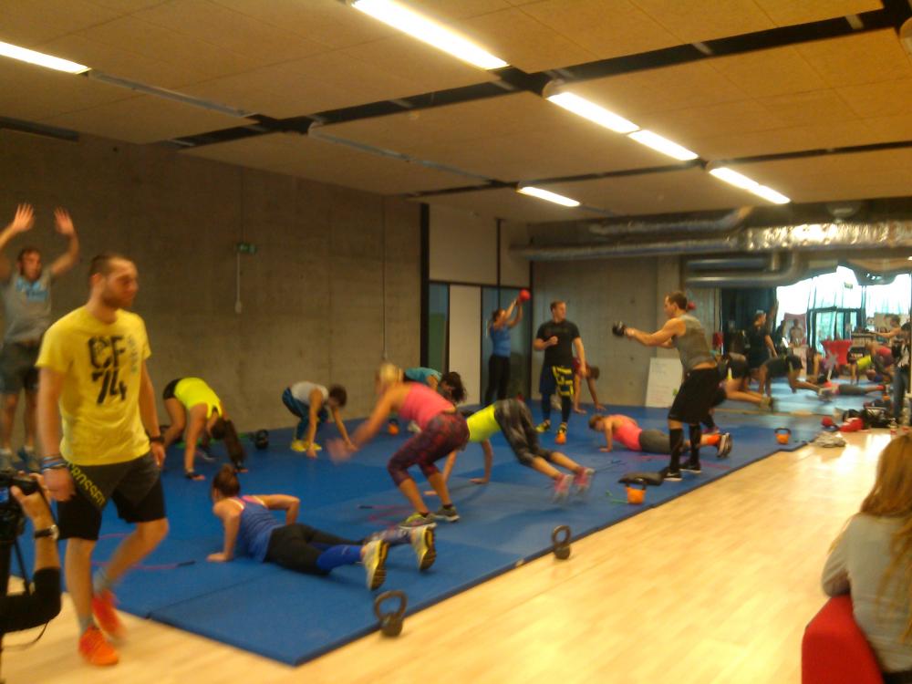 Crossfiti trenn, kuhu olid üsna ruttu kõik kohad täis registreeritud. Eemalt vaadates tundus üsna karm, sangpommiga harjutused, hüpped, kätekõverdused. Kes täna ilma jäi, võib uurida Crossfiti trennide kohta siit foorumi teemast.