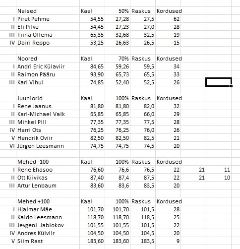 Mehed -100kg oli väga napilt parim Rene Ehasoo. Otiga surusid nad kahel korral võrdselt, alles kolmandal katsel suutis õpilane olla oma treenerist parem. Väga vinge võitlus oli!