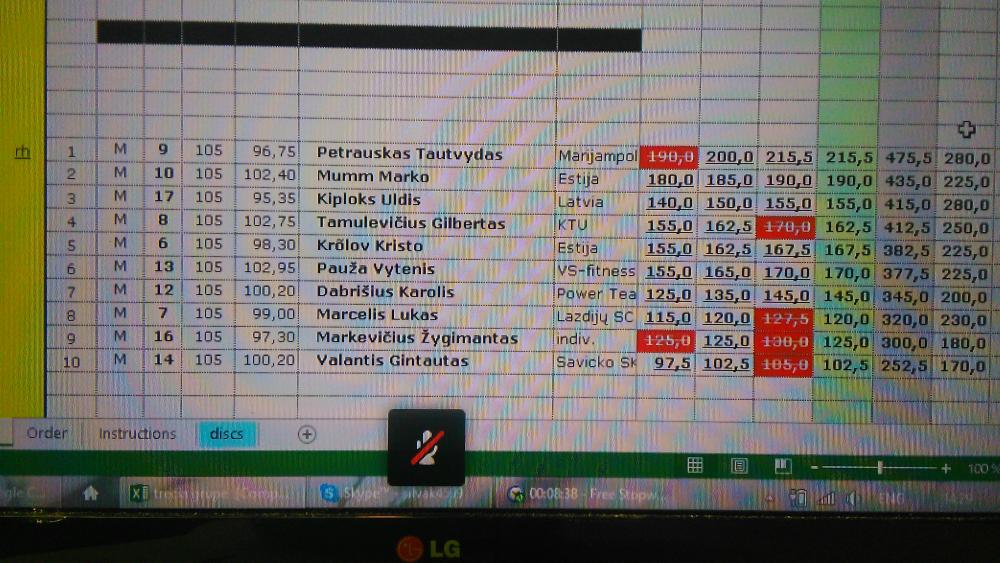 Marko Mumm III koht -105 kg Kükk 245 Surumine 190 Jõutõmme 242,5 (8 9-st). Lisan ka, et taastumine kakspea vigastusest on kulgenud üle kivide ja kändude, kuid usun, et saavutan eestikateks ikka täisvormi tagasi.