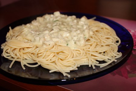 5. Õhtusöök: Pasta kanafilee ja juustukastmega + piim (~1000kcal)