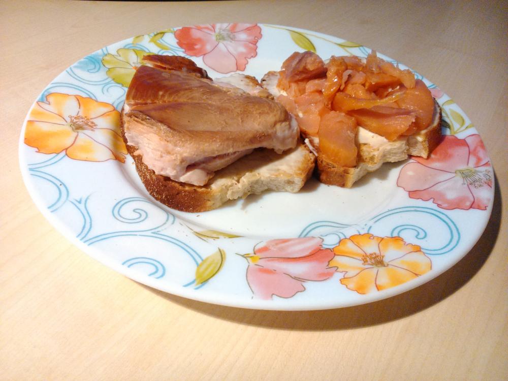 Hetk tagasi söödud õhtusöök – 2 saia sulatatud juustu ja suitsukana/soolalõhega: